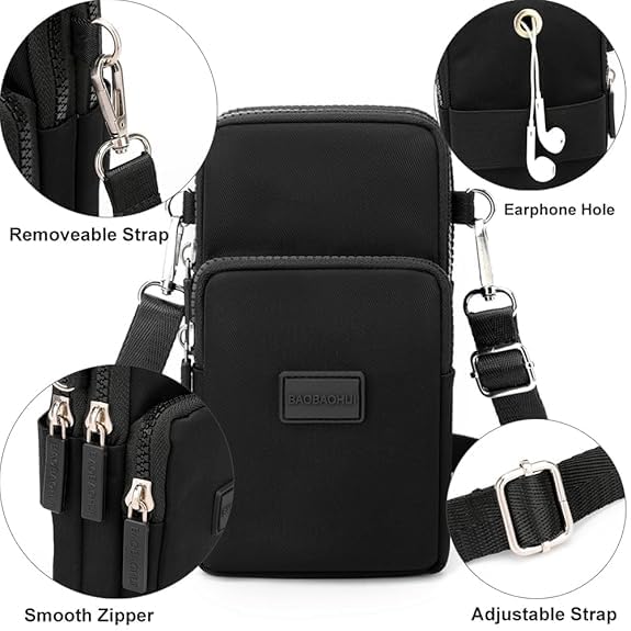 Multipurpose Crossbody Mobile Sling Bag for Men & Women – Waterproof, Adjustable Strap, Travel & Casual Shoulder Bag (Black)