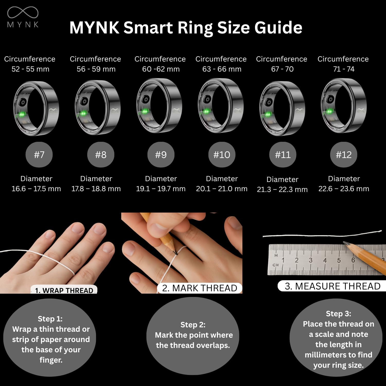 SLEEK & COMFORTABLE DESIGN: Crafted from durable stainless steel with a minimalist and ergonomic design, the lightweight MYNK Smart Ring offers a comfortable fit for both men and women.