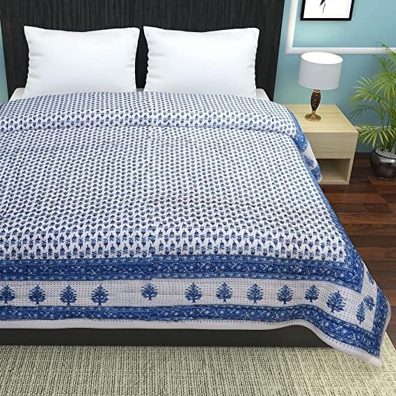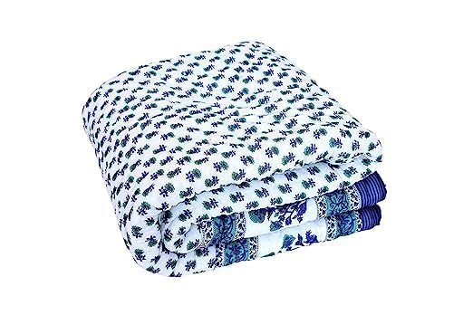 NAAR Razai Pure Cotton Jaipuri Razai Traditional Sanganeri Print Light Weight AC/Winter Quilt/ (Single & Double Bed) (White Booti, Single)