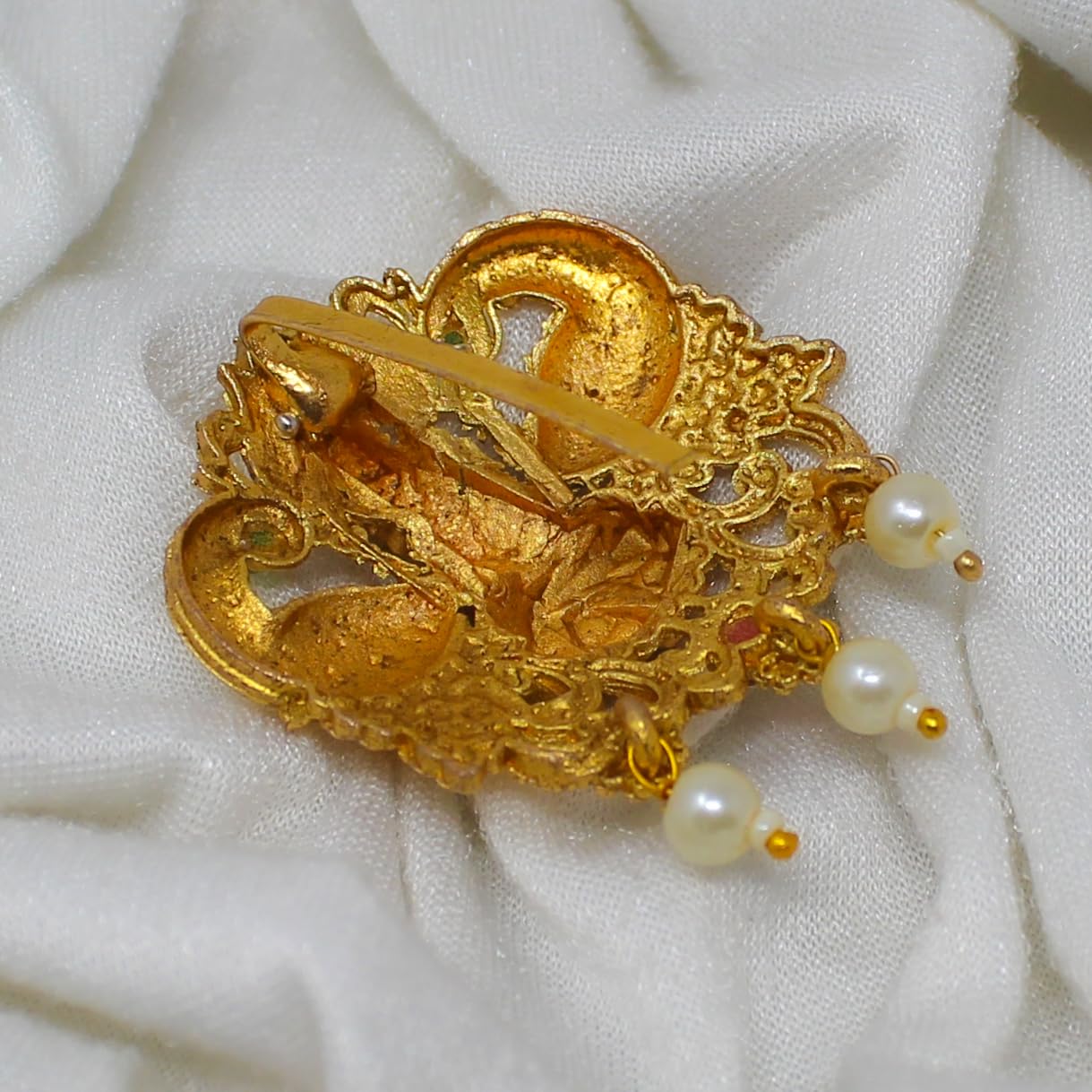 Enhance your bridal look with the Nagneshi Art Temple Jewellery Choti Pin, a stunning piece of traditional South Indian hair jewellery. Crafted with intricate Goddess Lakshmi motifs, adorned with gold plating, vibrant Kemp stones, and delicate pearl drops, this hair accessory exudes elegance and heritage. Perfect for brides, Bharatanatyam dancers, classical performers, and festive occasions, this choti pin adds a touch of divinity to your hairstyle.
