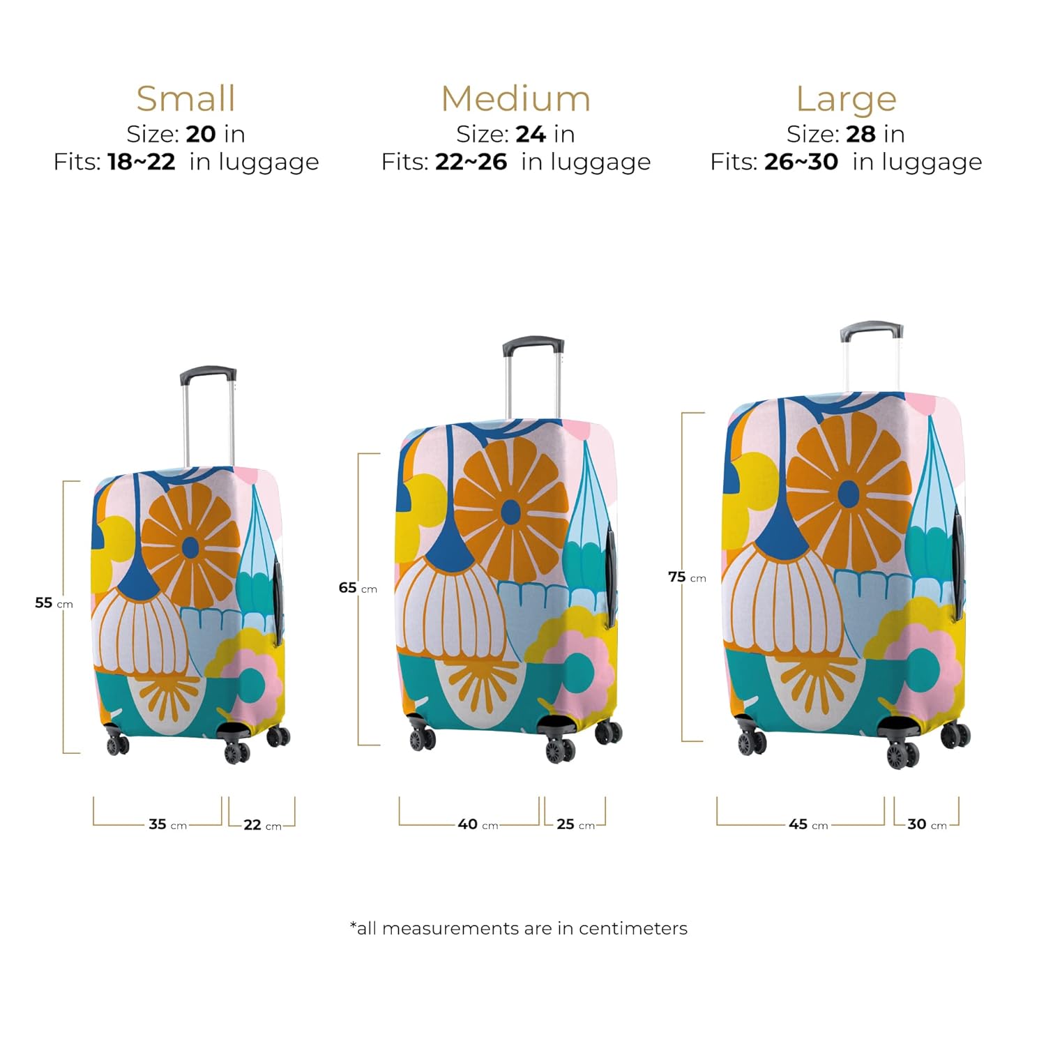DURABLE AND ELASTIC: Highly stretchable polyester-spandex mix, fully covers the luggage and ensures its protection, also making it easy to put and remove.