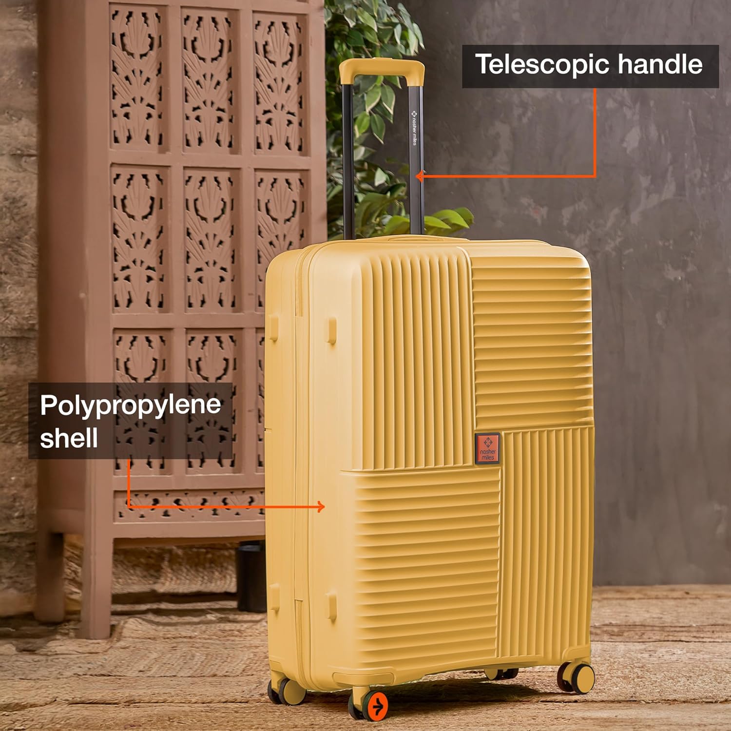 Nasher Miles Singapore Hard-Sided Polypropylene 8 Wheels Double Spinner Check-in Luggage Yellow 24 inch |65cm Trolley Bag,Medium