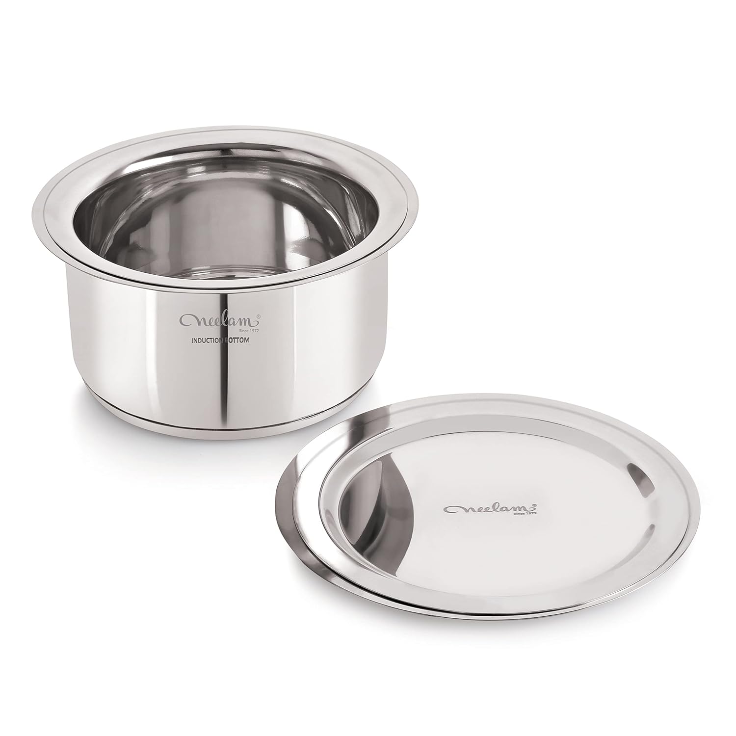 Neelam Stainless Steel Induction Bottom Tope Cookware Set of 2 Pcs (1950ml, 2550ml), Durable Quality Cookware for Efficient Boiling, Steaming, Cooking with Heat Retention & Dishwasher Safe