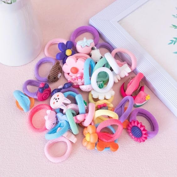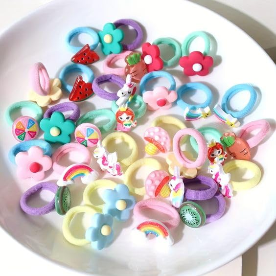 Vibrant and Fun Designs: Colorful hair ties, elastic bands, and flower hair bands for a playful touch.