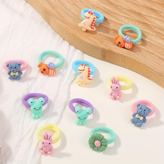 NEOBABY Fun Cartoon Character Design’ s Hair Accessories | Elastic Hair Bands for Kids, Baby Girls & Women (Assorted, Pack of 6 Pairs)