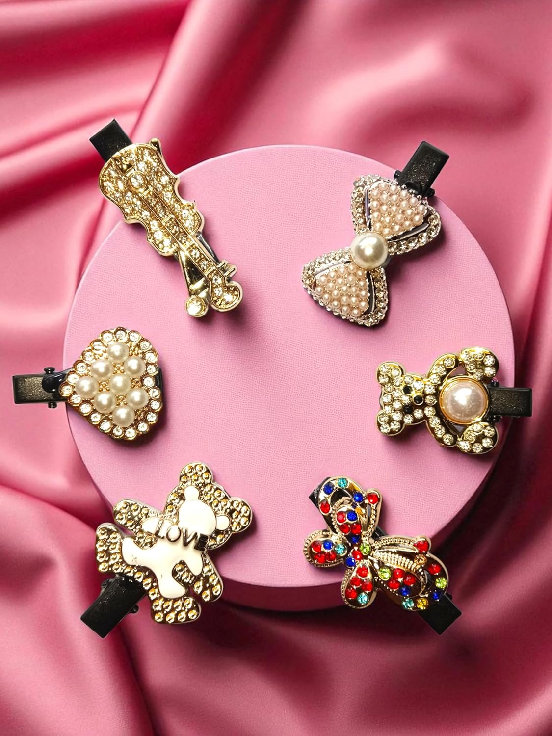 PACK CONTENTS: Collection includes 6 pieces of fashionable hair accessories in complementary designs with pearl and rhinestone decorations