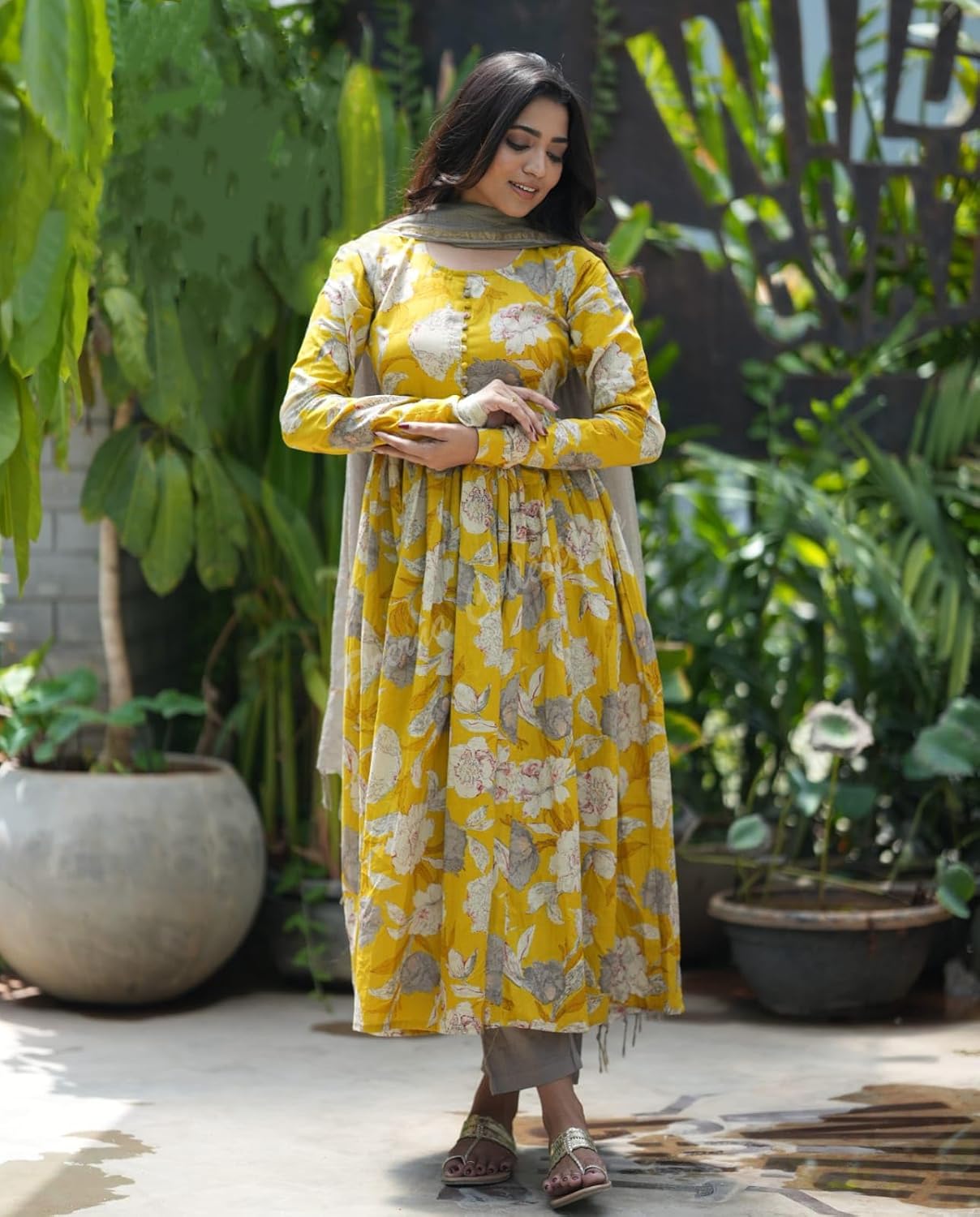 Customers find the outfit’s fabric to be pure cotton and breathable, with a nice color combination and good value for money. They appreciate its style, with one customer highlighting the superb flare of the kurti, and find it comfortable. The fit receives mixed feedback.
