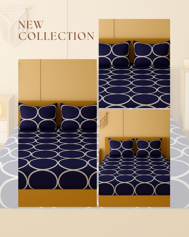 NEW LEAF Cotton Feel Double Bedsheets with 2 Pillow Covers | Double Bed Breathable | Wrinklefree | Ultrasoft 220 tc Supersoft Floral Multicolour | 90 x 90 Inches, Olive Blue