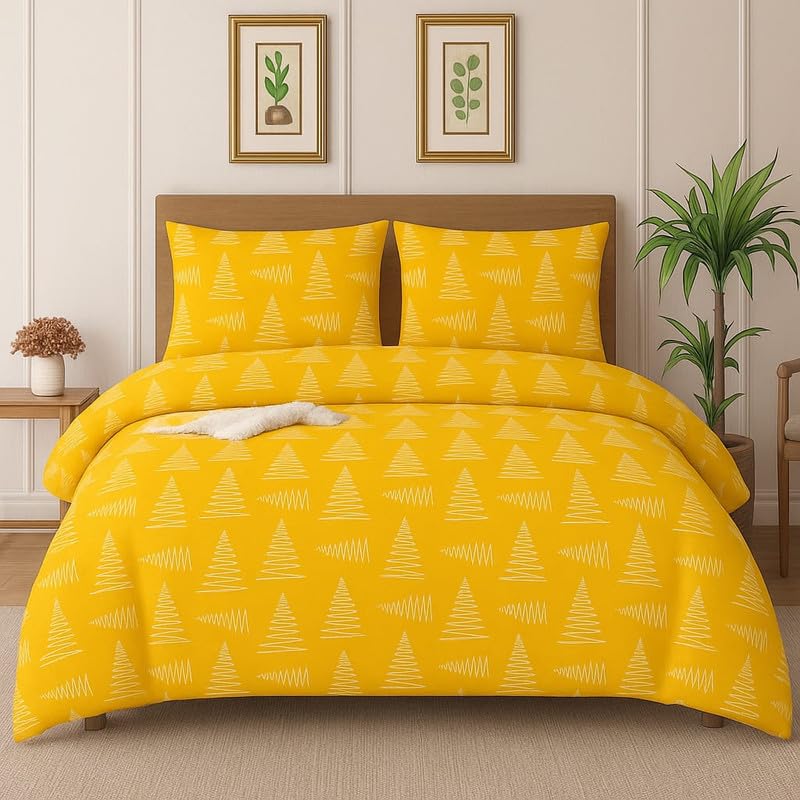 New Leaf Cotton Flat Double Bedsheets with 2 Pillow Covers | Double Bed Breathable | Wrinklefree | Ultrasoft | 220 tc Floral | 90 x 90 Inches, Multicolour Mustarded