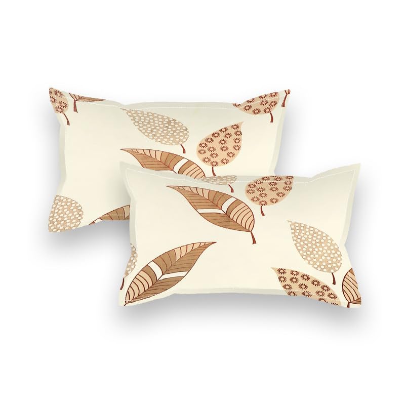 NEW LEAF Premium 100% Cotton 220tc Flat Double Bed Bedsheets for Summer Breathable | Wrinklefree Long lsting (Size-90 x 90 Cm, 7ft x 7ft) with 2 Pillow Covers (Size-17 X 27 Inches, Olden White)