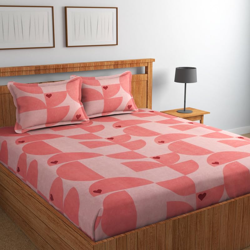 NEW LEAF Premium 100% Cotton 220tc Flat Double Bed Bedsheets for Summer Breathable | Wrinklefree Long lsting (Size-90 x 90 Cm, 7ft x 7ft) with 2 Pillow Covers (Size-17 X 27 Inches, Pink White)