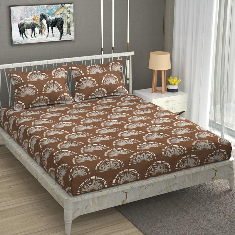 NEW LEAF Pure Cotton Flat Double Bedsheets with 2 Pillow Covers | Double Bed Breathable | Wrinklefree | Ultrasoft |Summer Bedsheet 200 to 220 tc Floral | 90×90 Inches,Brown