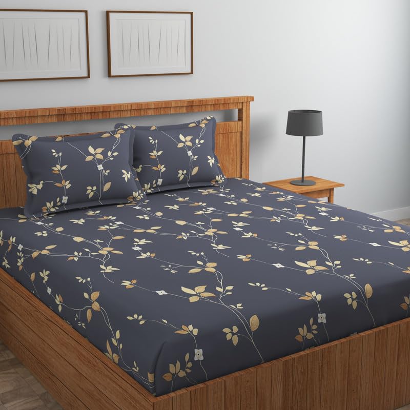 NEW LEAF Pure Cotton Flat Double Bedsheets with 2 Regular Size Pillow Covers | Double Bed Breathable | Wrinklefree | Ultrasoft 200 to 220 tc Supersoft Leaf | 90×90 Inches, Dark Grey