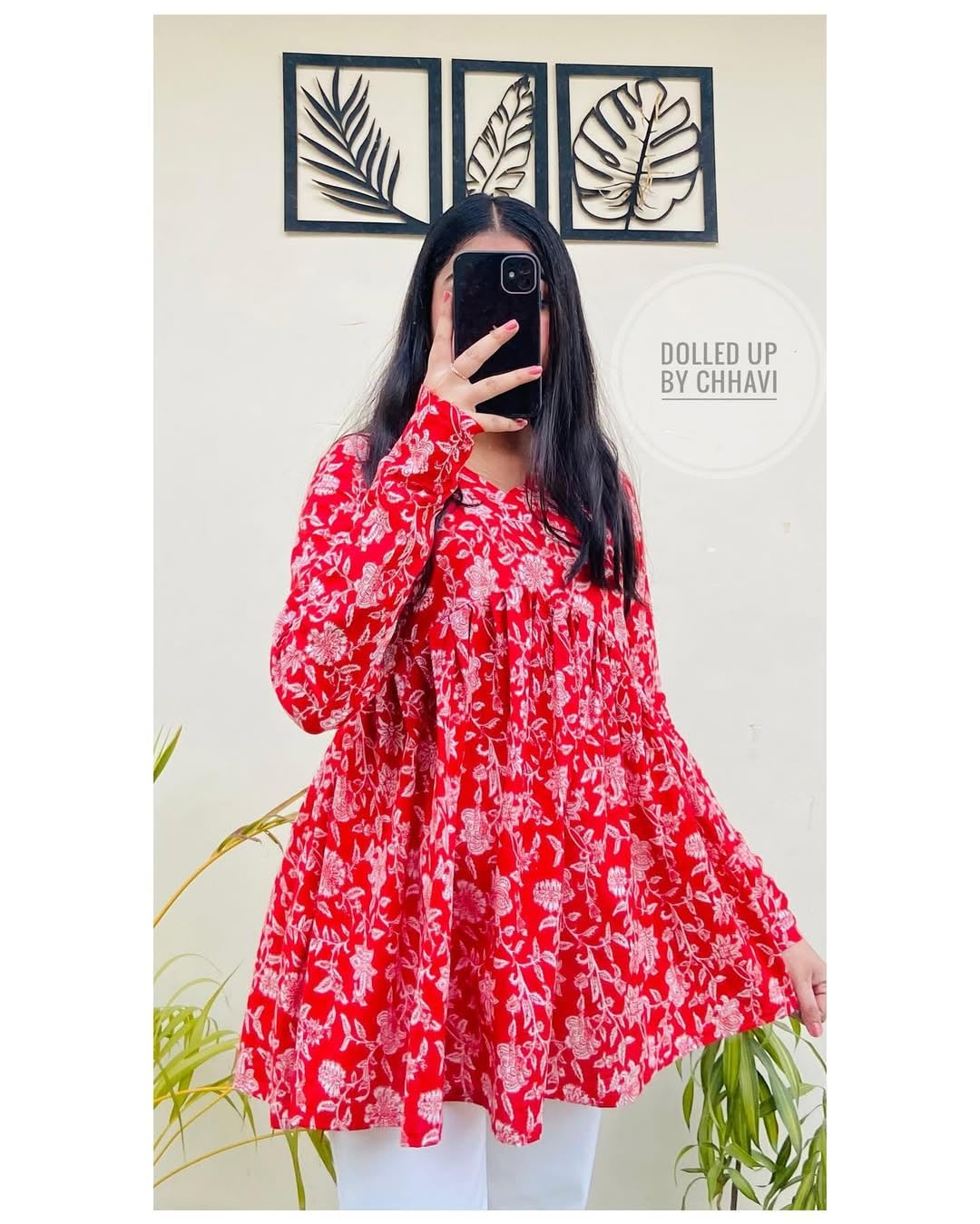 The quality of products is made here, you will get to see something better than others in Rayon Aliya Flared Pattern Short Kurti. its Fabric is Soft Rayon which will keep the skin comfortable and the Finishing has been taken care of Premium Quality. Floral Prints Short Kurti Length: 28 | Bust Size Chart: S (36), M (38), L (40), XL (42), XXL (44), | Neck Style: V Neck| Type: Best worn in Daily Wear, festivals, casually in Daily Wear, Beautiful Pink Fit Cotton Kurti. Color Will Not Bleed, Fast Colors, No Shrinkage, Washing instruction: Machine wash, Wash in normal water | Sleeve Length: Full Sleeves Beautiful Multicolor Color.