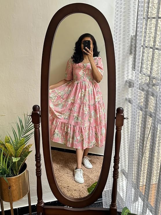 Customers find the dress comfortable, with a flattering fit and soft fabric that makes it perfect for everyday wear. However, the quality receives mixed feedback, with some praising the fabric while others find it average cotton. Moreover, the style and color fade aspects also get mixed reviews.