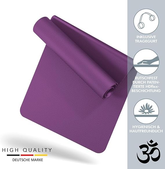 Comfortably thick for a better work out:-180cm long 60cm wide ensures comfort for people of all shapes and sizes. With high density eco friendly material, the 6mm thick premium mat comfortably cushions spine, hips, knees and elbows on hard floors while keeps you balanced.