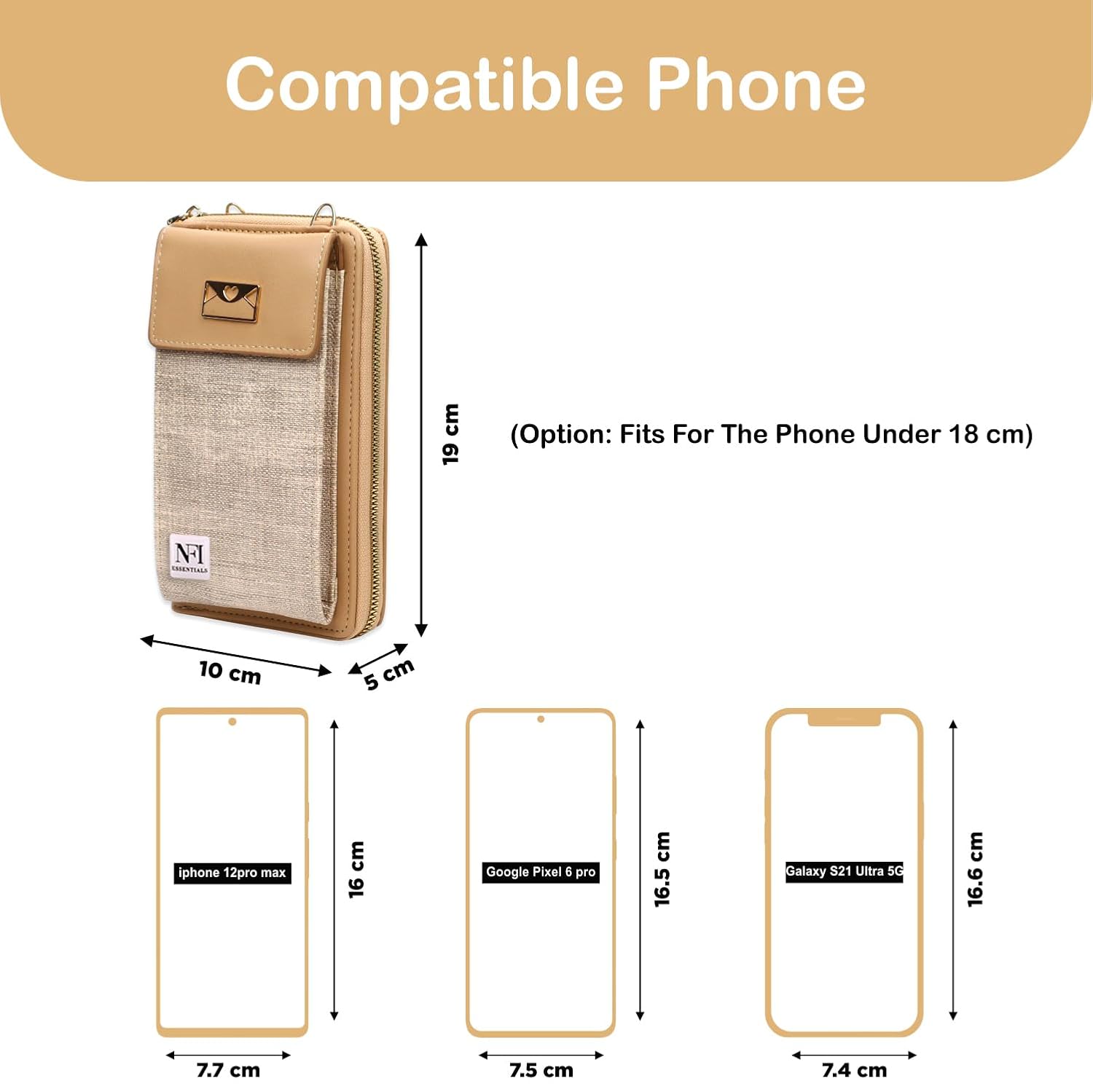 NFI essentials Girls Women Women’s Mobile Cell Phone Holder, Pocket Wallet, Hand Purse, Clutch Crossbody Mobile Sling Bag, Phone Pouch for Women