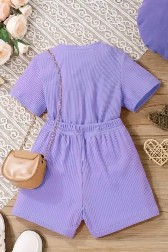 Ninas Baby Girls Solid Cotton Blend Style Top and Shorts Set for kids (Purple)