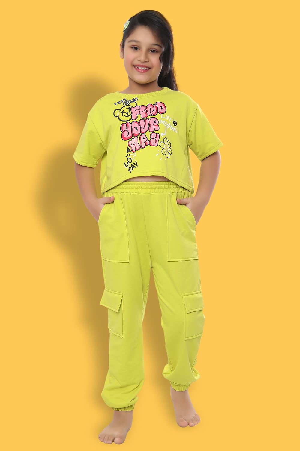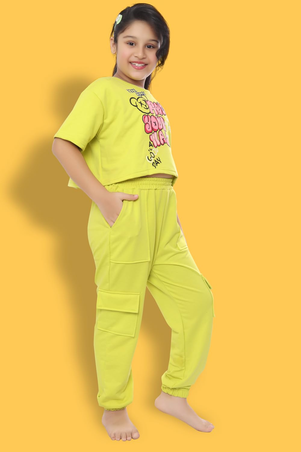 Ninos Dreams Solid Loose Girls Cargo Style Joggers with Oversized Crop Top/Girls Clothing Set/Girls Co-ord Set/Girls Fashion