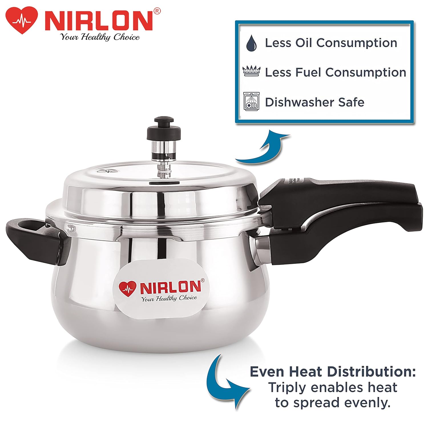 NIRLON Induction and Gas Stove Compatible Outer Lid Belly Triply Stainless Steel Pressure Cooker, 5 Liters