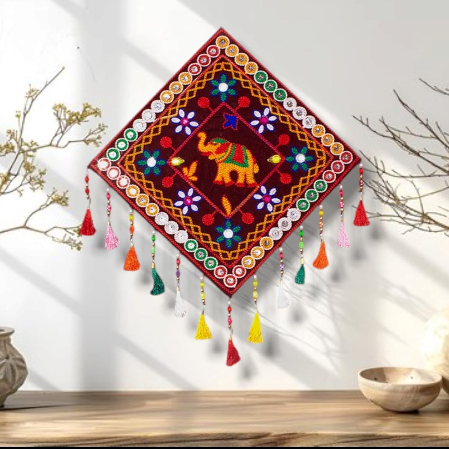 Introducing our exquisite Gujarati wall hanging, featuring Elephant art a true masterpiece in home décor. Crafted to elevate the aesthetic appeal of any space, this stunning piece is designed to be the focal point of your interior decoration, ideal for living room wall décor and traditional wall decoration. Whether you’re seeking decorative items for your home or room décor items for the bedroom, this wall hanging seamlessly integrates into various settings, from living rooms to bedrooms and beyond. This Gujarati wall hanging is more than just a decorative item; it embodies the essence of aesthetic room décor and bedroom decoration. Perfect for kitchen décor and living room decorative items, it adds an elegant touch to any environment. For those looking to enhance their living spaces with artistic design, this piece is an essential addition, offering a refined ambiance through its intricate craftsmanship. Its versatility extends to wall décor for bedrooms, living rooms, and even office spaces, making it a valuable addition to your collection of home décor items. Whether used as wall art, a room decoration item, or a hanging decorative piece, it is a must-have for those with a discerning eye for interior decoration. Made from high-quality materials, including colorful beads, mirrors, and tassels, this engineered wooden wall décor piece adds a rustic charm suitable for various spaces, including doors, bedrooms, and bathrooms. Easy to clean with both wet and dry cloths, this wall hanging also shines as an entrance decoration for homes, office décor, or as part of your wall hangings collection. It enhances your home with warmth and character, making it an ideal choice for those seeking sophisticated home décor. Elevate your space with this timeless piece, perfect for bringing your home decoration vision to life.