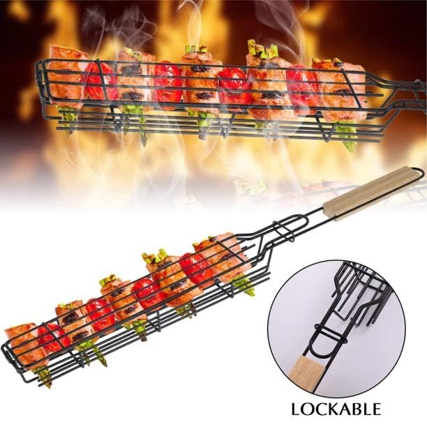 Lomesh Non Stick Kabab Baskets Kabob BBQ Grill Baskets and Set Durable Stainless Steel Grill Baskets with Lockable Grid and Wooden Handle BBQ Basket