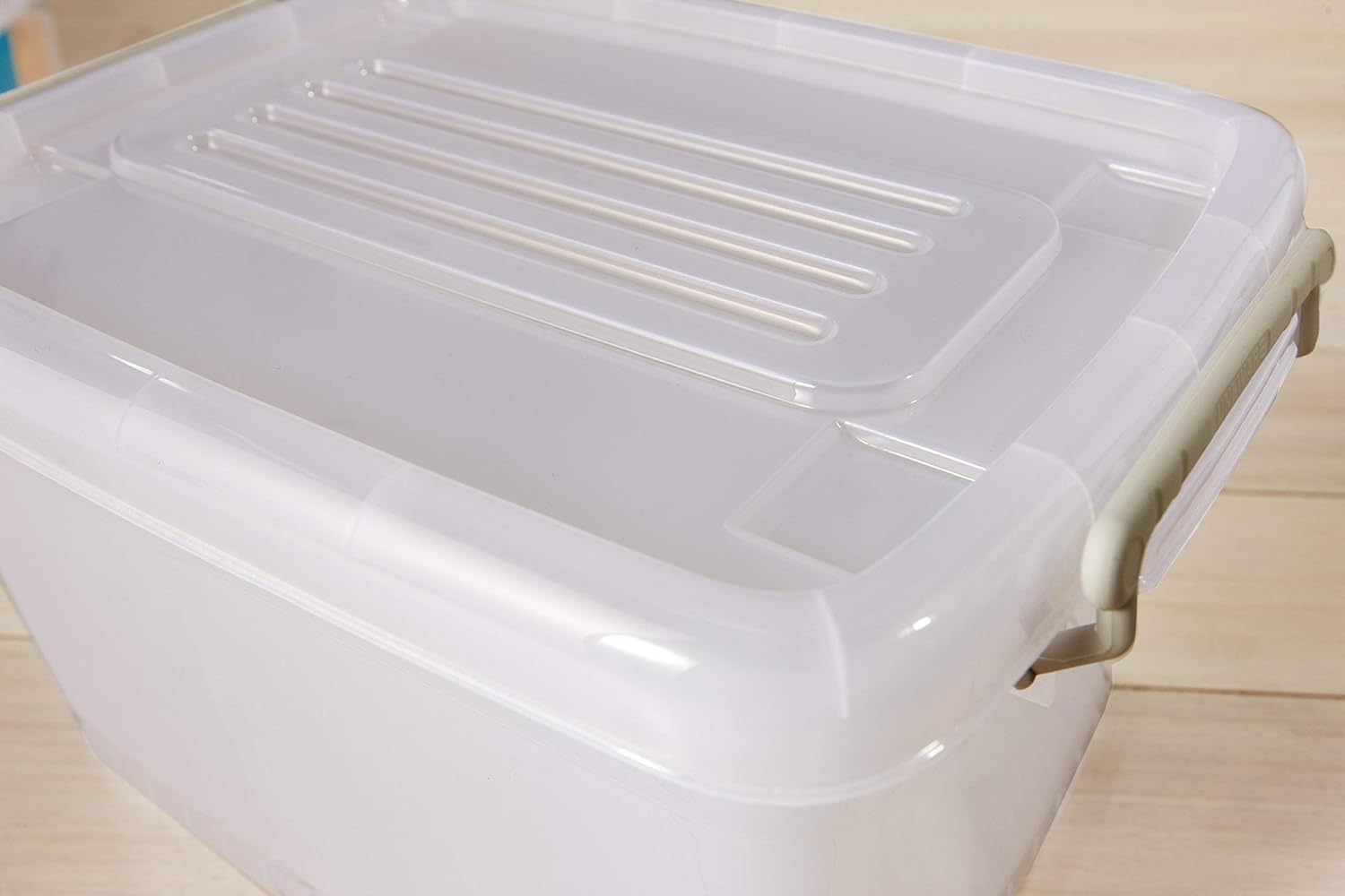 The sturdy handles of this plastic storage container can endure repeated lifting, pushing and pulling