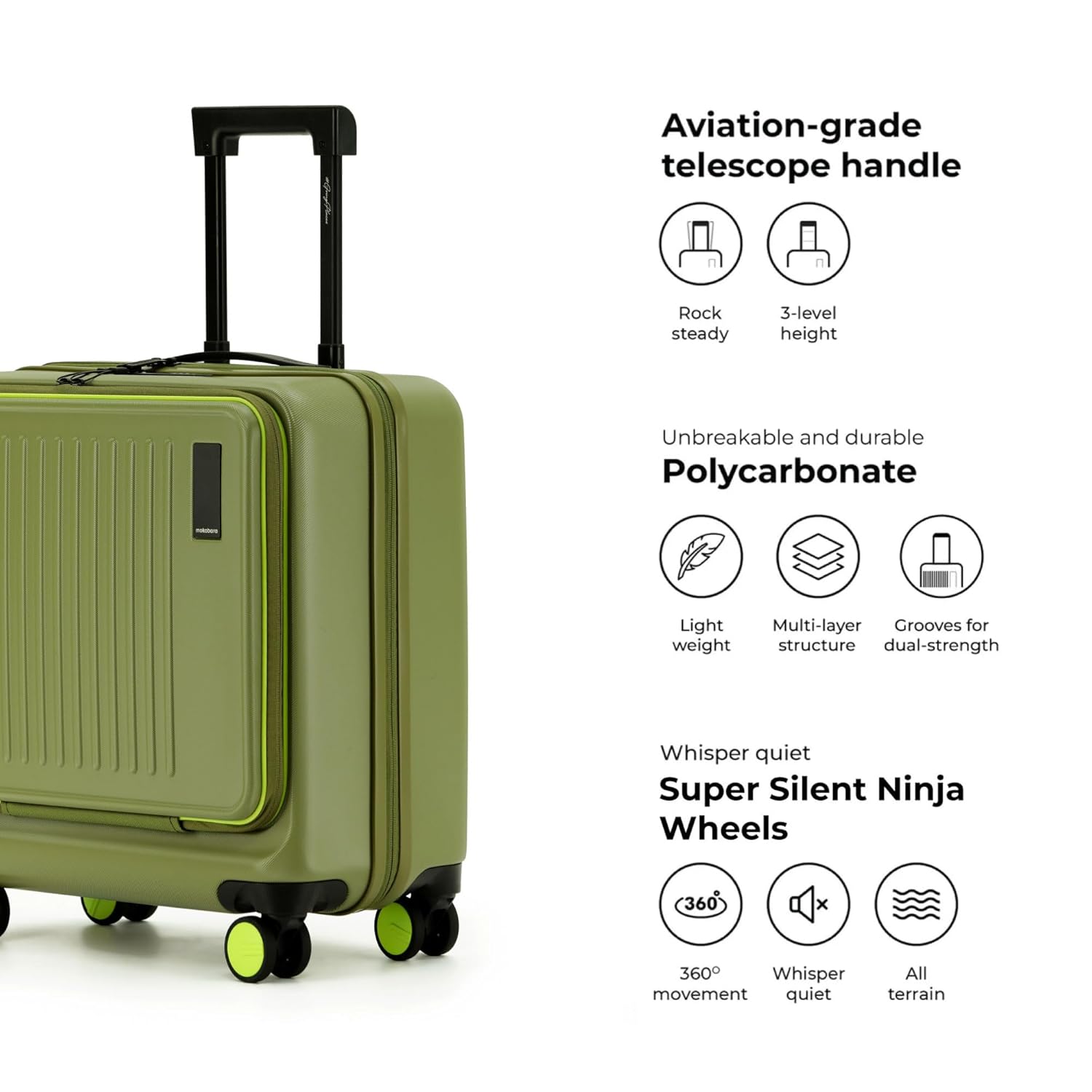 OKOBARA The Transit Cabin Overnighter Luggage 58cms Cabin Size Poly-Carbonate Hard Sided 8 Hinomoto Wheels Trolley (So Matcha Limeray)