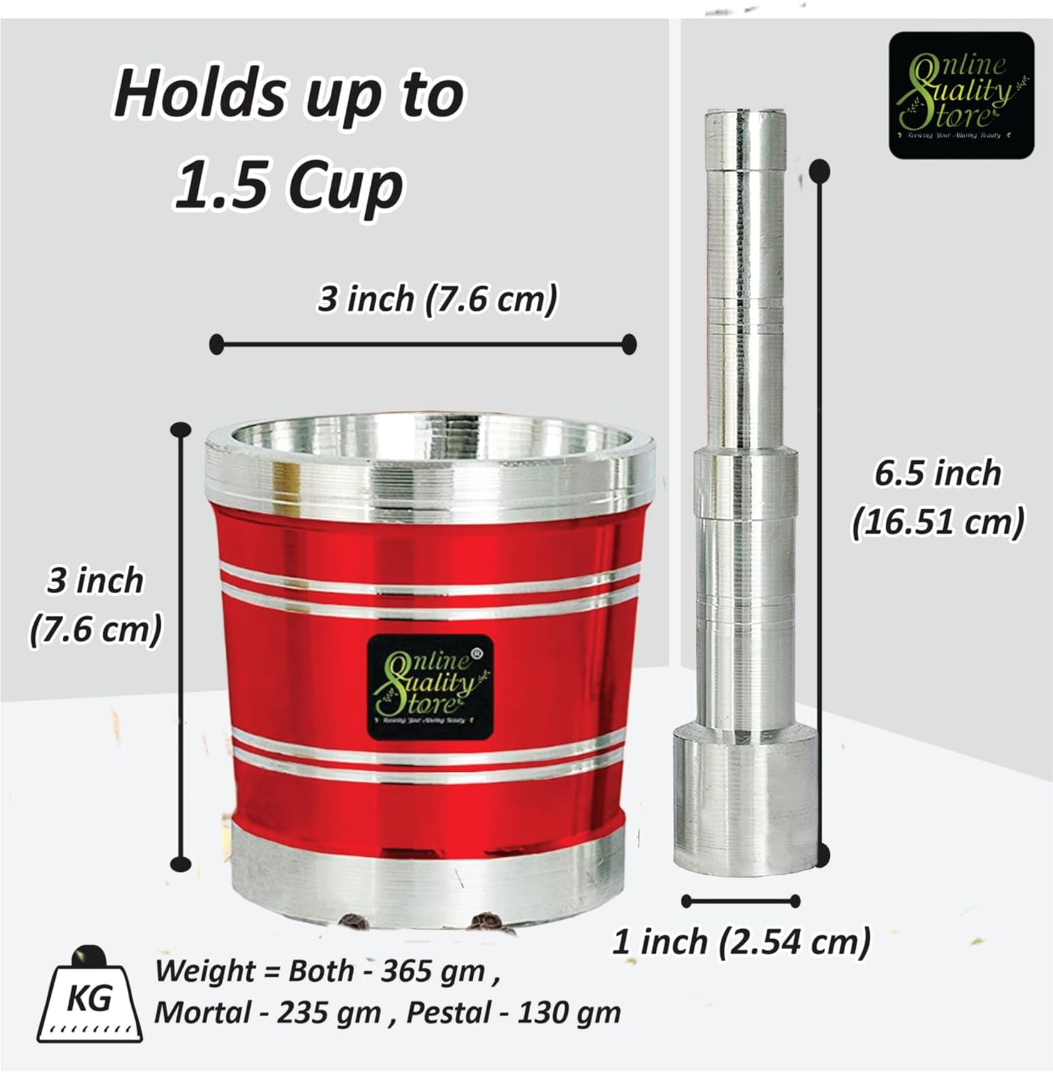 Online Quality Store For perfect lip smacking recipes, trust nothing but this Aluminium mortar pestle/khalbatta imam dasta/okhli masher/hand chopper that features a high quality aluminum construction to serve your kitchen for many years to come. This khalbatta and masher are absolutely easy to use to mash spices and herbs. Now ground fresh spices at home just before cooking easily. Bring out the aromatic flavour of spices by freshly grinding them. It is a known fact that the aroma, taste and punch of a freshly ground spices is far superior to that of a already ground spices powder. Other features: Imperfections are bound to appear on the surface as product is made by casting. Strong construction, durable and rust free.