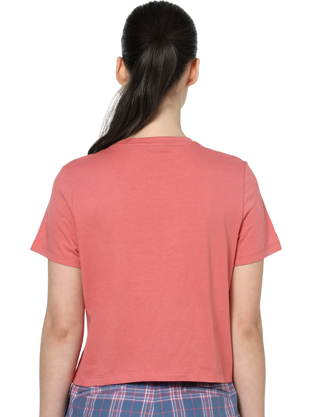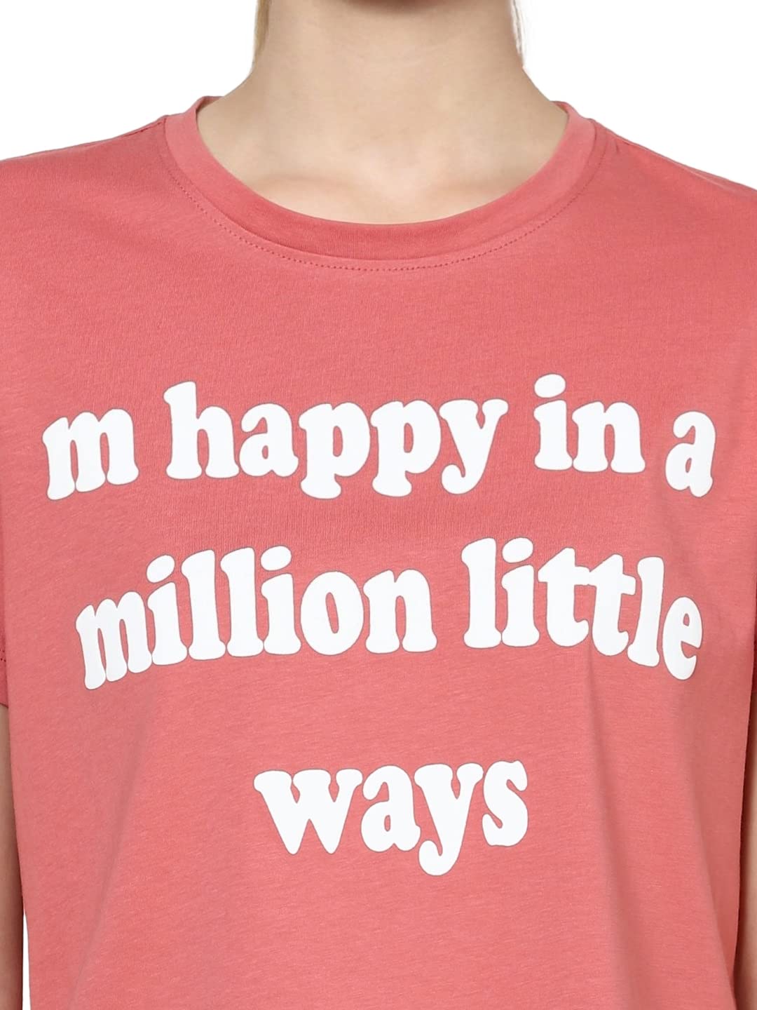 ONLY Women Pink Typography Printed Cropped Pure Cotton T-Shirt