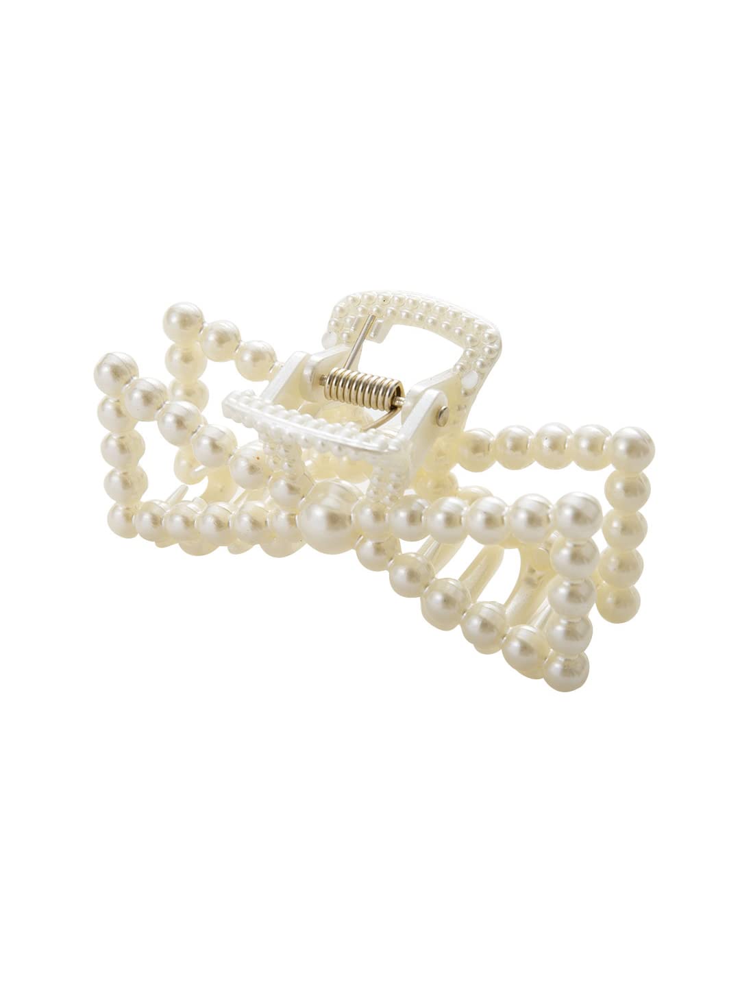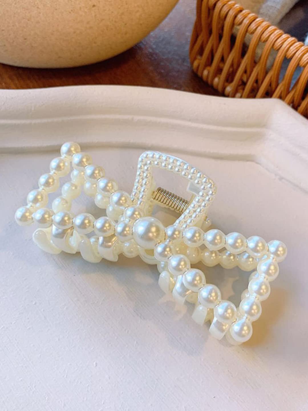Gold Tone White Pearls Bow Shape Large Big Hair Clip Hair Claw for Women & Girls Stylish Latest. Perfect for Parties, Girls Night Out, Dinner, Dance, Movies, Birthdays, Anniversary, Gifting, Brunch, Clubbing, Cocktail, Valentine, Gifting, Office-wear, Family Get-Togethers, Engagement, Brunch, Movies, Day-wear,etc.