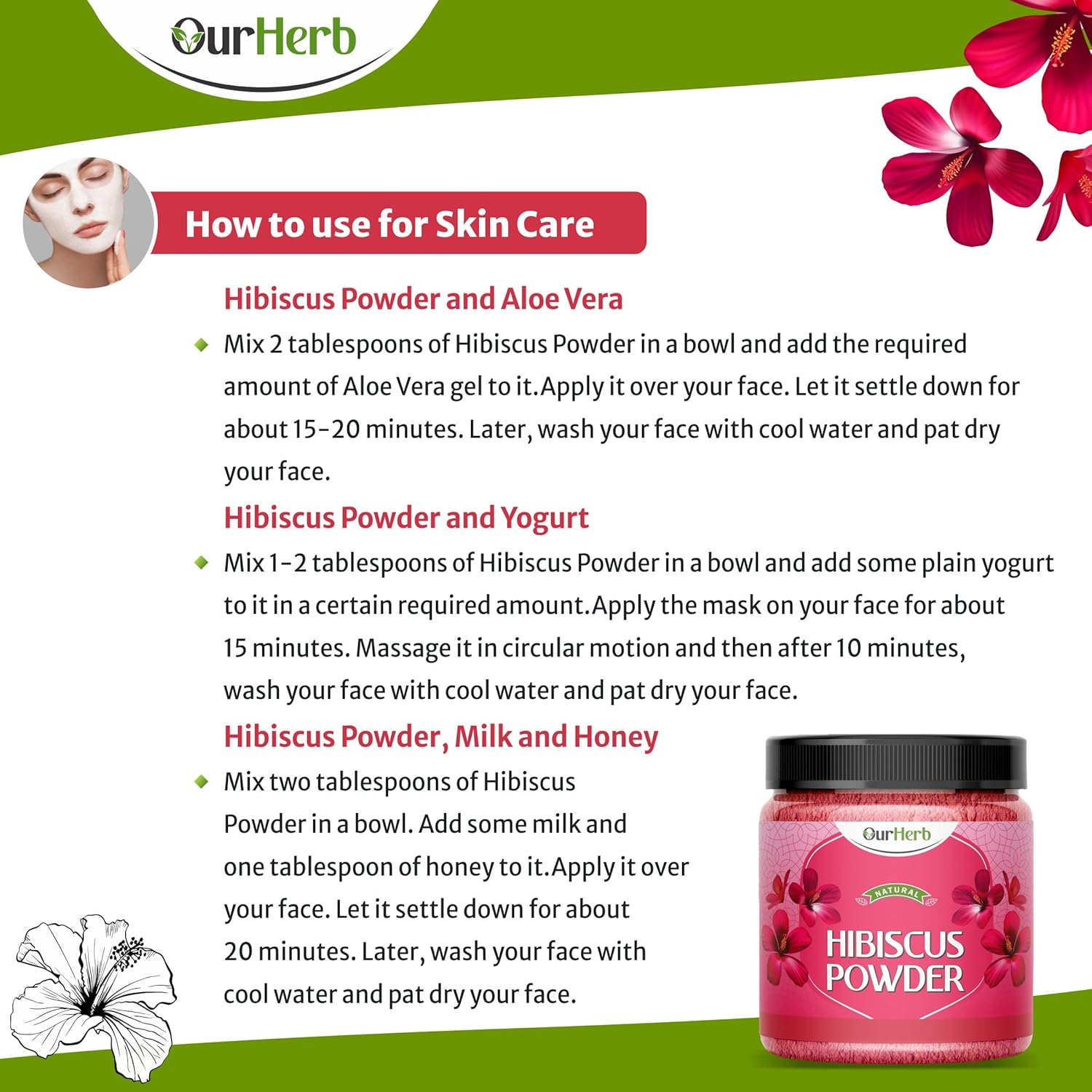 ✅𝟏𝟎𝟎% 𝐏𝐮𝐫𝐞 𝐚𝐧𝐝 𝐎𝐫𝐠𝐚𝐧𝐢𝐜: OurHerb Hibiscus Flower Powder obtained by crushing the flowers of hibiscus plants organically grown in select Indian farms