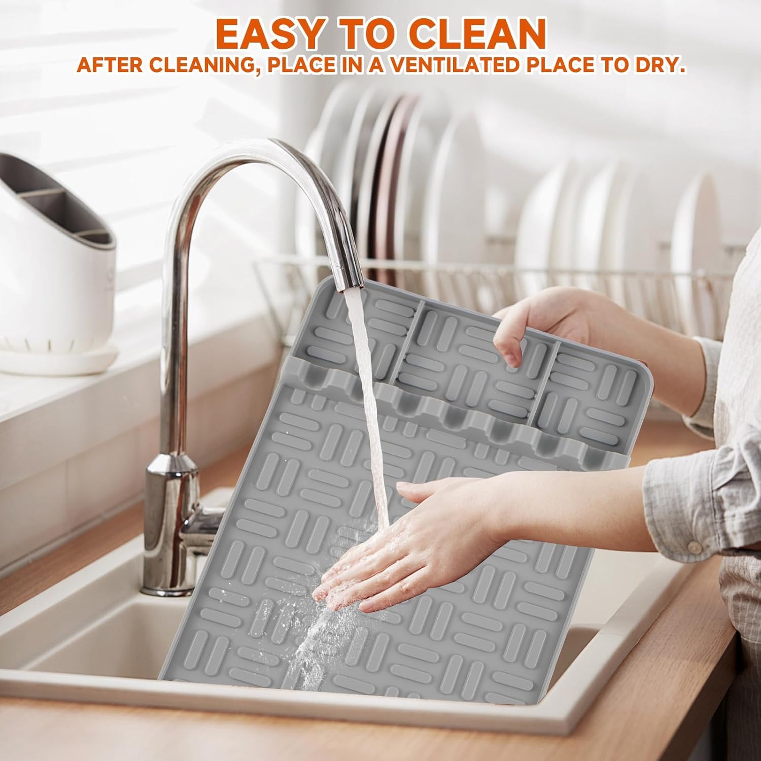 Heat Resistant and Easy to Clean: Designed to withstand high temperatures, our silicone side shelf tools mat can be safely placed near the stove or countertop without any heat-related concerns. Plus, cleaning is a breeze – simply wipe it down or toss it in the dishwasher for hassle-free maintenance. Keep your kitchen stove cooking and countertop clean effortlessly with our silicone spatula mat.