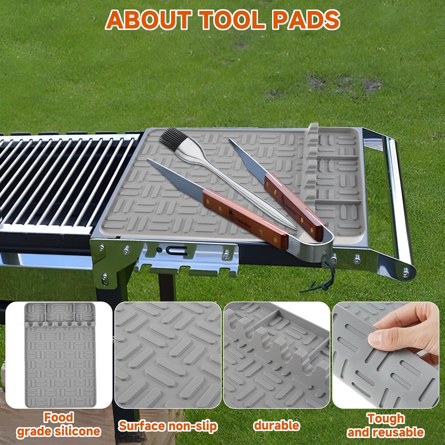 Outdoor Grill Mat, Spatula Tools Holder Pad Silicone Mat with Drip Pad, BBQ Mats, Baking Mats, Grill Prep Trays Silicone Grill Mat, Griddle Tools Holder Mat BBQ Griddle Accessories