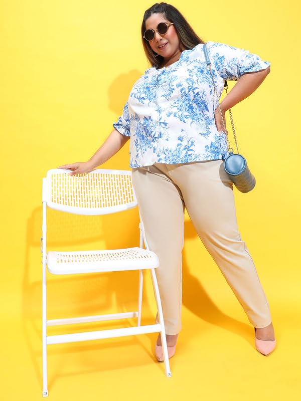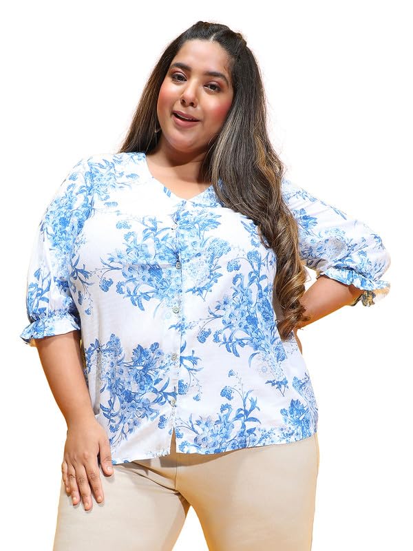 Celebrate your curves with this Remaked Blue Floral Print Button Detail 3/4 Sleeve Women Plus Size Top , designed to enhance and flatter plus-size figures. The V-neckline elongates the silhouette, while the button detail adds a touch of refinement and versatility. Crafted from viscose fabric known for its softness and drape, this top offers a lightweight and breathable feel, ensuring all-day comfort and effortless movement. The 3/4 sleeves provide coverage and a stylish twist, making this top perfect for transitioning between seasons. Pair it with jeans for a casual outing or with tailored pants for a polished look suitable for work or evening occasions.