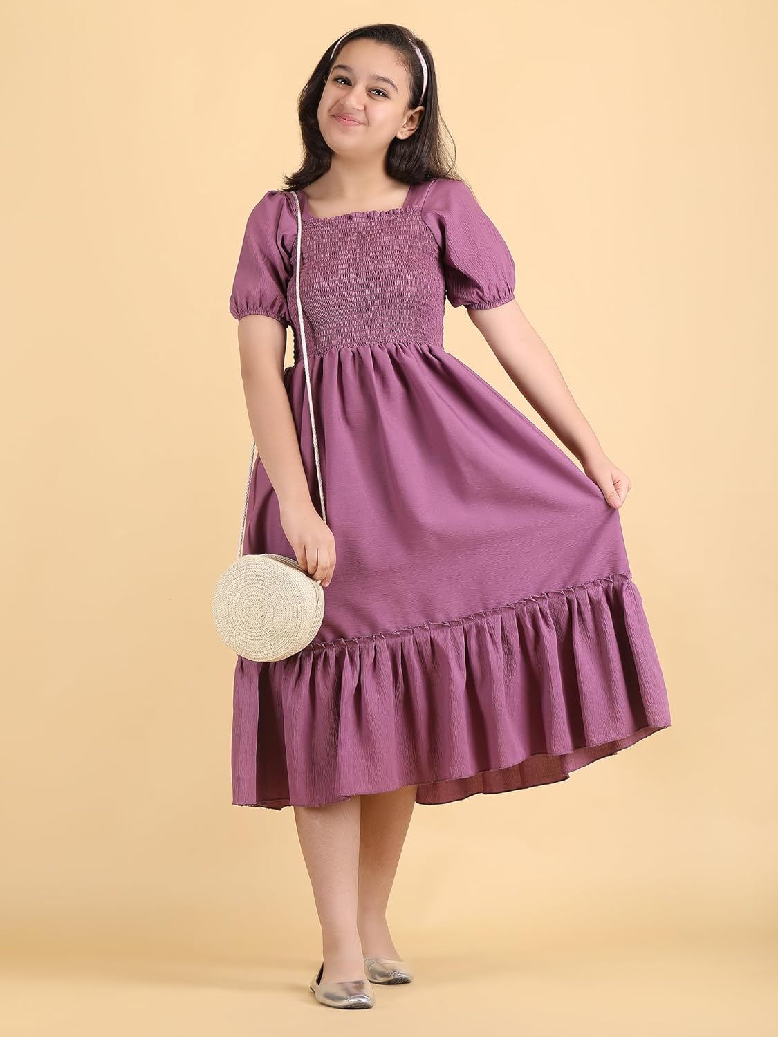 Spruce up your little girls wardrobe with this fit and flare dress from Oxymate- Fashion Dream on Amazon. This dress is perfect for a day out with friends or night get-togethers with family. This vibrant dress is perfect for your little girl’s summer outings. The bright floral printed flare dress stand out from the rest. It featured round neckline, pin tucks with potli detail on yoke, puff sleeves, floral print work from waist to hem making this dress more attractive, comes along zip closure at backside. Breathable and chic, sport this dress on a sunny outing with your friends paired with tan sandals or sneakers and some minimal jewellery.