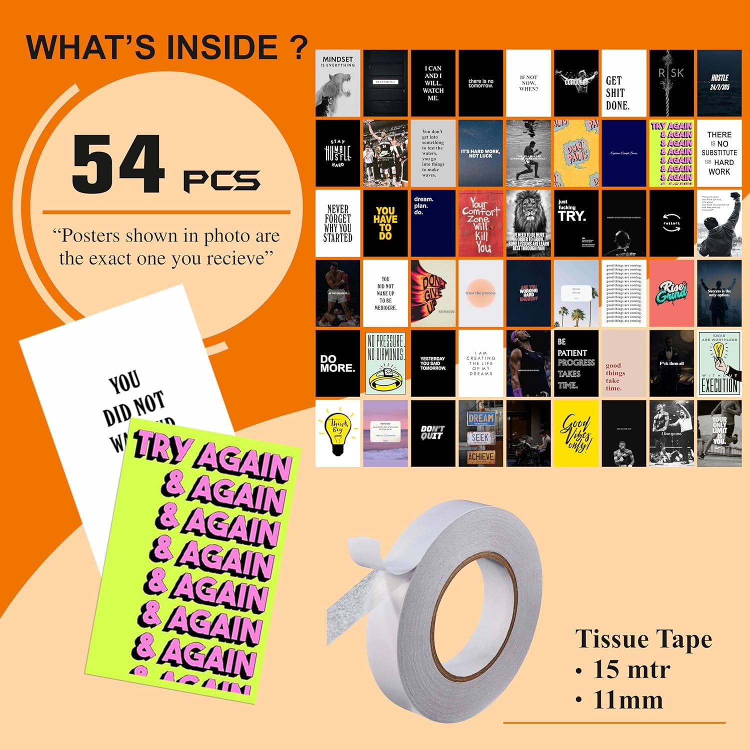 Pack of 54 Motivational Aesthetic Wall Collage Kit Posters for Wall Decoration – Wall Art For Bedroom, Office, Living room, Dorm room
