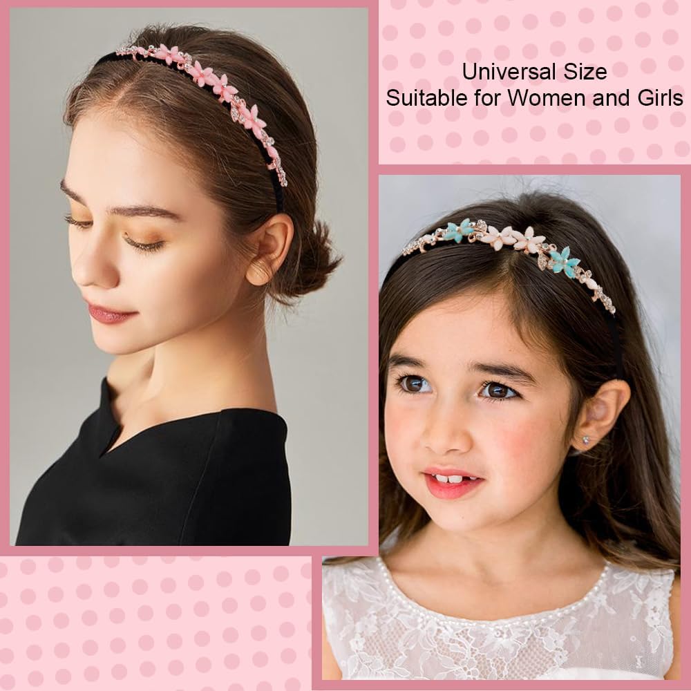 Packof 2, Multicolored Stones, Flower Hair Bands, For Women, Girls, Children And Teenagers
