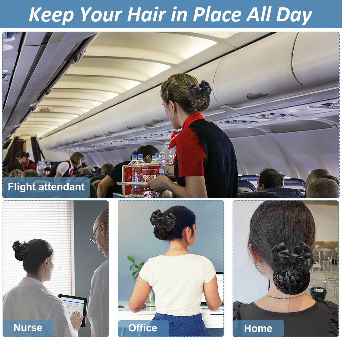 KEEP YOUR HAIR IN PLACE ALL DAY: Easy to use and help you to make a perfect hair bun, and keep your hair bun in place all day, convenient for doing work, also keep your hair style look nicely. The hair clip securely holds the net in place, ensuring that your bun stays intact throughout the day.