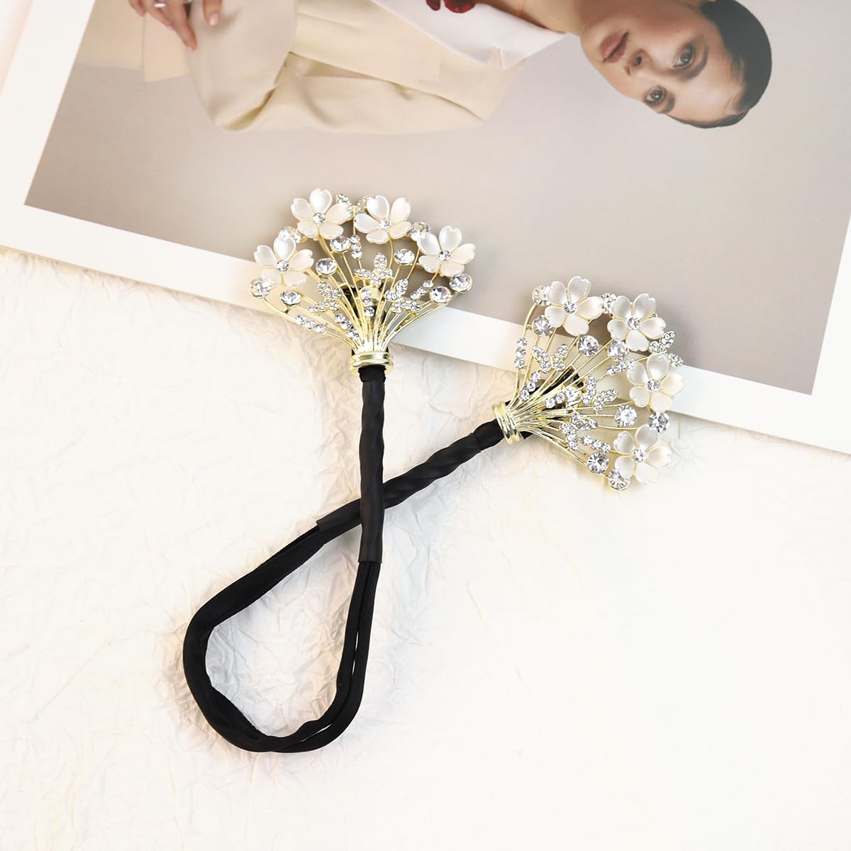 DAZZLING EMBELLISHMENTS: Distinguished by its exquisite details, this bun maker hair bun accessory is adorned with gleaming green rhinestone florals and charming pearls decoration at the ends. These delicate, sparkling elements add a touch of glamour to your hairstyle, making it suitable for both everyday elegance and special occasions.