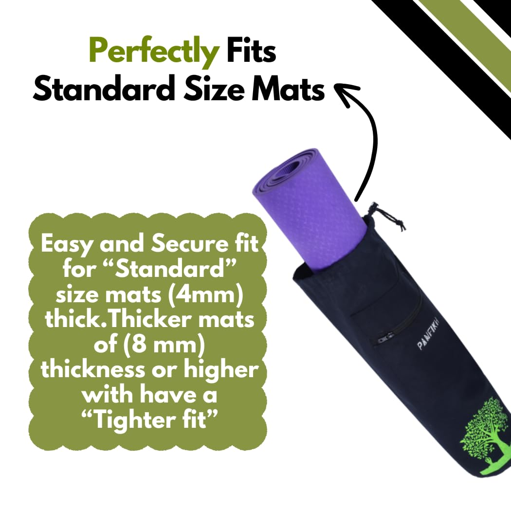Large Capacity: Measuring 29″ long x 10.5″ wide, this yoga mat bag can easily accommodate mats up to 2/5-inch (10mm) thick and 25-inch (64cm) broad.