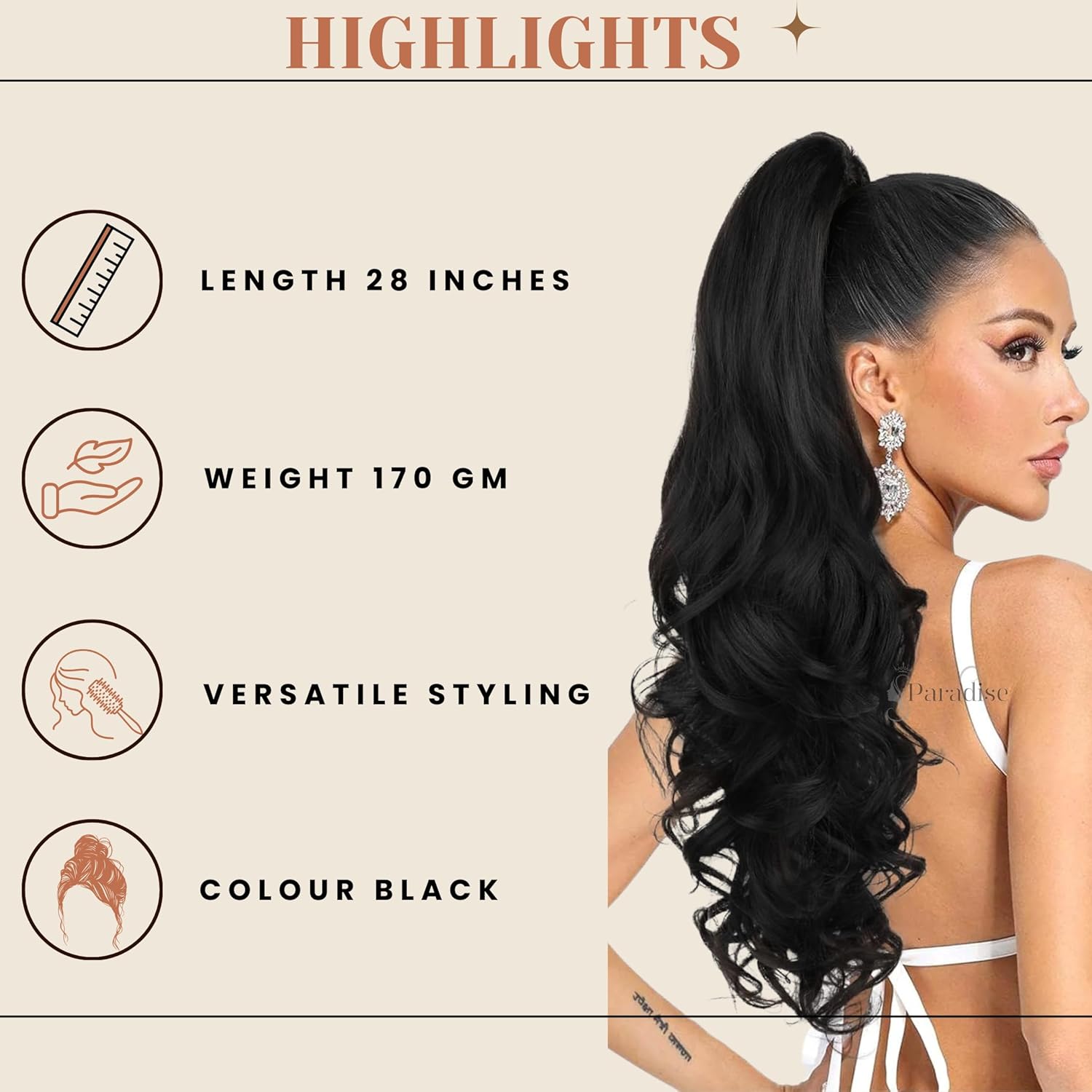 Lightweight & Comfortable: Despite its full volume, this ponytail weighs just 160 grams, offering comfort without sacrificing style.
