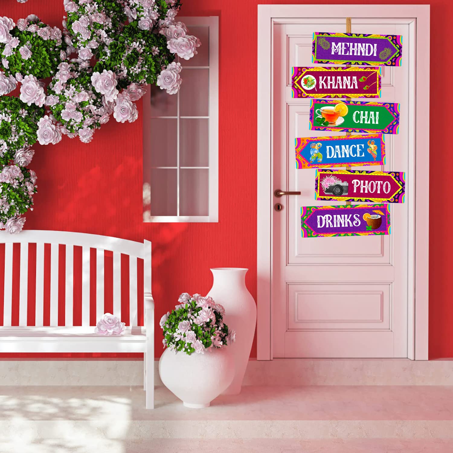 WEDDING CEREMONY DECORATION SET – The Wedding decoration items for marriage set includes 6Pcs Door Board cut-outs. This is a very beautiful supply for your haldi ceremony decoration items or mehndi decoration items for marriage or bride-to-be or groom-to-be party or sangeet decoration items for marriage or mehndi props for bride and family or marriage decoration items for wedding. This decoration props is easy to use and can be just put up anywhere on the room door or on the wall to have the best wedding celebration party!