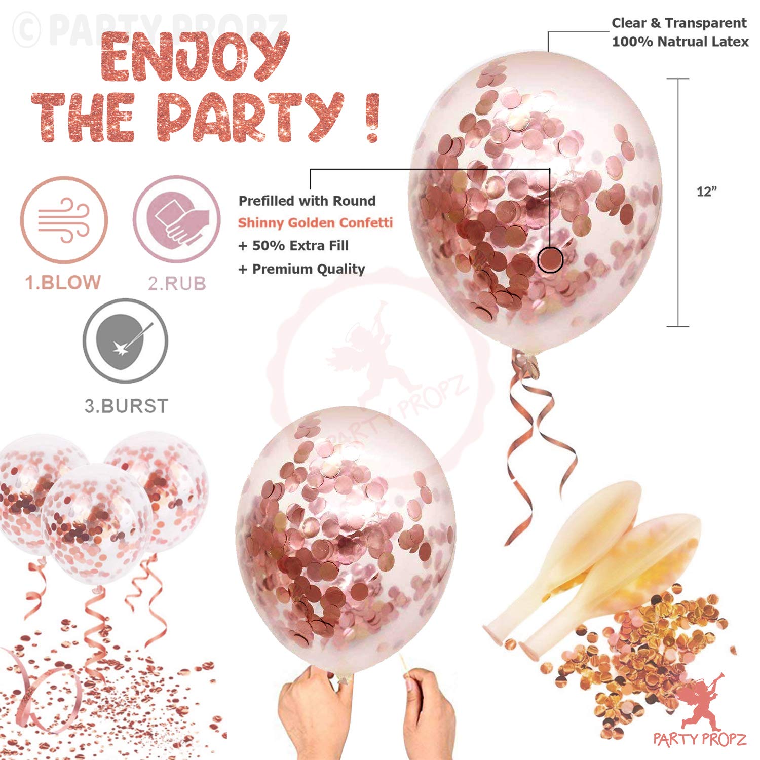 STYLISH ROSE GOLD BALLOON COMBO FOR ALL CELEBRATIONS: This rose gold balloon combo is ideal for any occasion, not just birthdays. With a mix of rose gold latex, confetti, heart, and star foil balloons, it ensures variety and style in one package. Decorate in style for anniversaries, welcome celebrations, or festive gatherings using this elegant and convenient set. The rose gold balloons add a sophisticated tone, making your decorations stand out effortlessly.