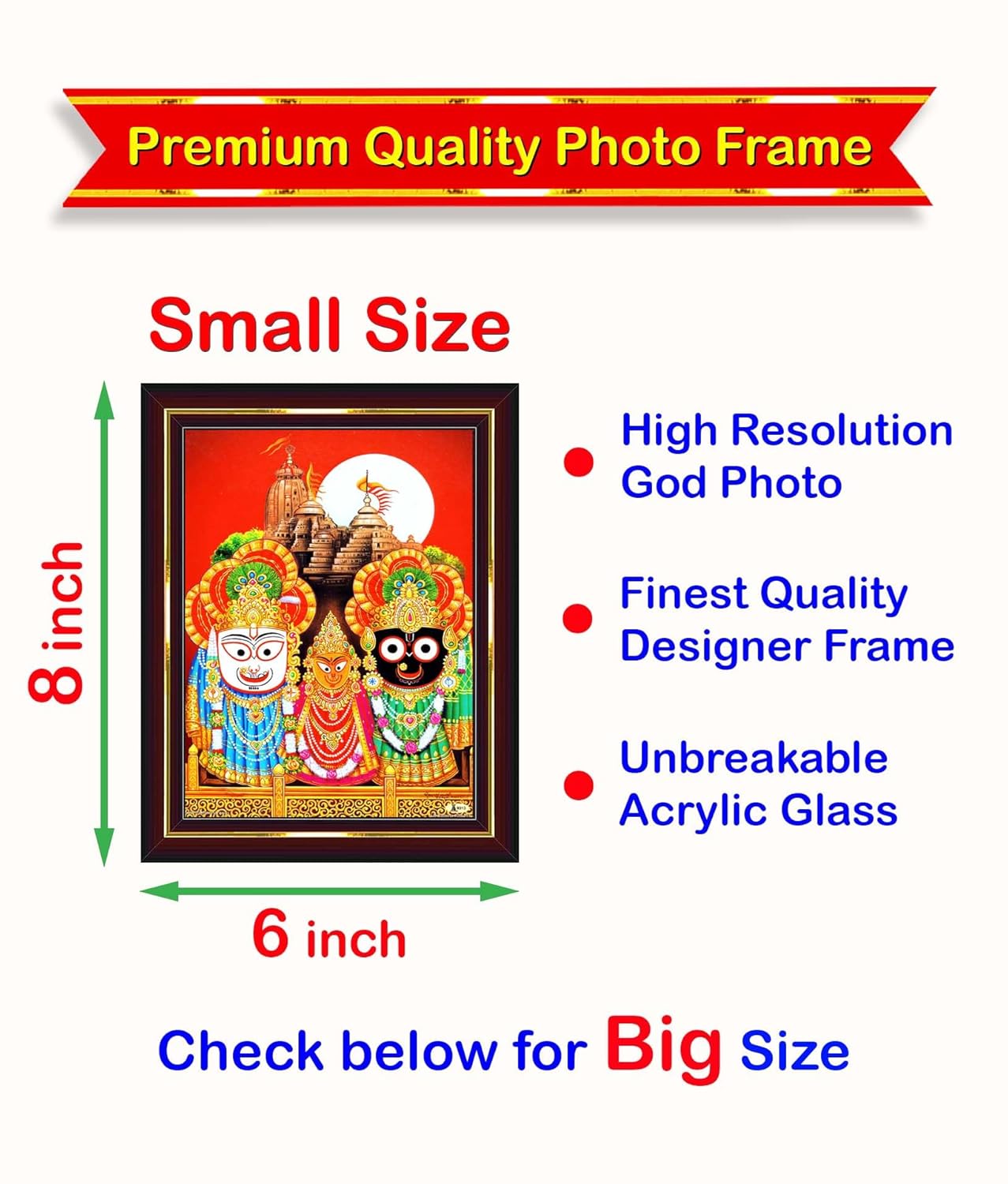 Pavan Photo Laminations Puri Jagannath Subhadra Balabhadra Balaram Wall Painting Framed Home Decor (Wood,Matte,Brown,Small Size,6 x 8 Inch) B1600S