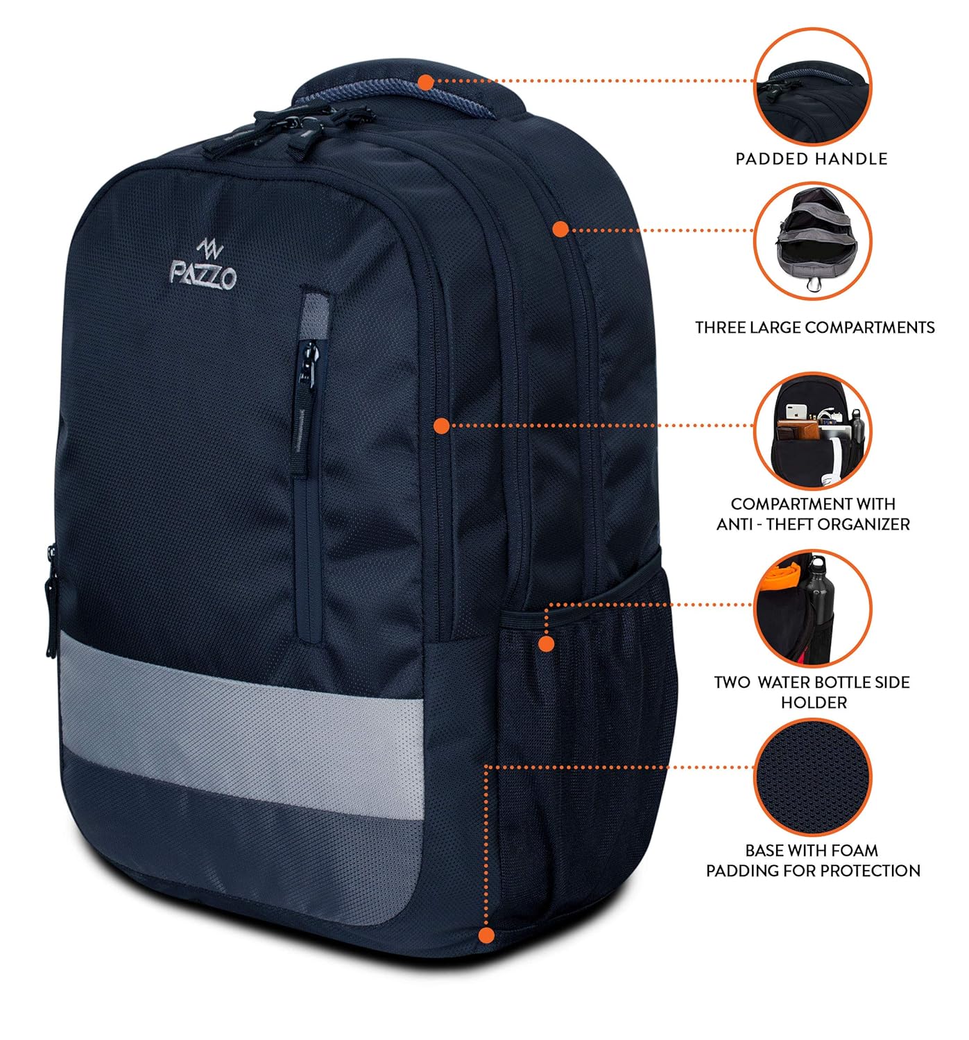 Our largest daypack, the Alto 40L Pack features multiple compartments and pockets that hold a full day’s worth of gear and keeps everything organized and accessible so you can move freely. The Alto houses everything in three roomy main compartments – The main compartment can hold majority of your sizeable items like books and has a lined sleeve to organise gear. The secondary compartment can carry additional stuff like lunch and running shoes for your workout. The third compartment has an internal organization slot to organize your valuables and keys. A zip closing front pocket carries charger and electrical cords. 3D Airflow mesh on the shoulder straps and back panel prevents overheating and two side stretch pockets keep water bottles within reach. Padded handle and reinforced haul loop for easy grab