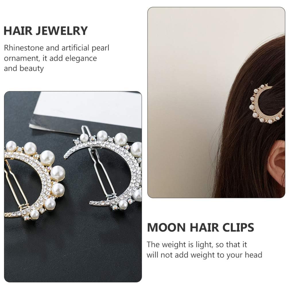 ELEGANT DESIGN: Crescent moon-shaped hair pins featuring a stunning combination of pearls and crystal rhinestones in a golden setting