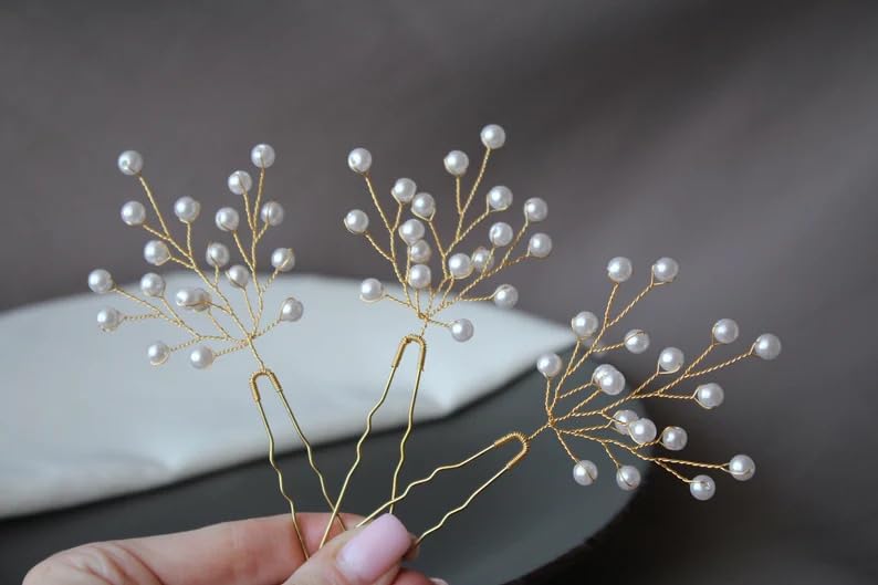 Elegant & Timeless Design: Featuring a luxurious combination of white pearls and gold accents, these bridal hair pins add an elegant and refined touch to any hairstyle. Perfect for brides, bridesmaids, or guests at any formal event.