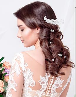 DHANABAPA 9 Pieces Pearl Bride Wedding Hair Comb Pearl Hair Pins Set Bridal Side Comb U Shape Bridal Hair Clip Pearl Bobby Pins Updos Hair Piece Wedding Hair Accessories for Women Girls, (Silver). Pearls Wedding headpieces is made of alloys and rhinestones with Fashion alloy elements. It is very beautiful. Bend it a little more open – but this did not hurt it in any way! The construction is solid and the twisted wire crystals/beads give it life. Well made, sturdy and in a simple way. Decorated with ivory silver alloy and Pearls. this legendary beauty evokes Old World grace and courtly elegance. It’s not too heavy, and I was able to wear it all day for a fairy costume. Our Headpiece is perfectly as an excellent embellishment for hair and facial form when joining bridal wedding,parties of birthday, wedding, ball, prom or other formal occasions. Every girl has a dream hidden in heart of being queen and getting attention,Our sparkly accessory aims to help make romantic dreams come true, creating your casual beauty! Wedding Hair Pins for Brides and Bridesmaids. Heread Brand since 1989 which focus on the design of bride wedding accessories. Our boutique aims to wholesale delicate & gorgeous bridal accessories for women. Unique hair dress is flexible with nice looking for bride,bridesmaid and flower girls on wedding. It’s also fit for engagement, prom, party, pageant and any occasions. Elegant and gorgeous looking will ensure you practicability and popularity with headpieces decoration. Practicability is our strong point.The exquisite structure and craft make the hair pins looks unique and distinctive.