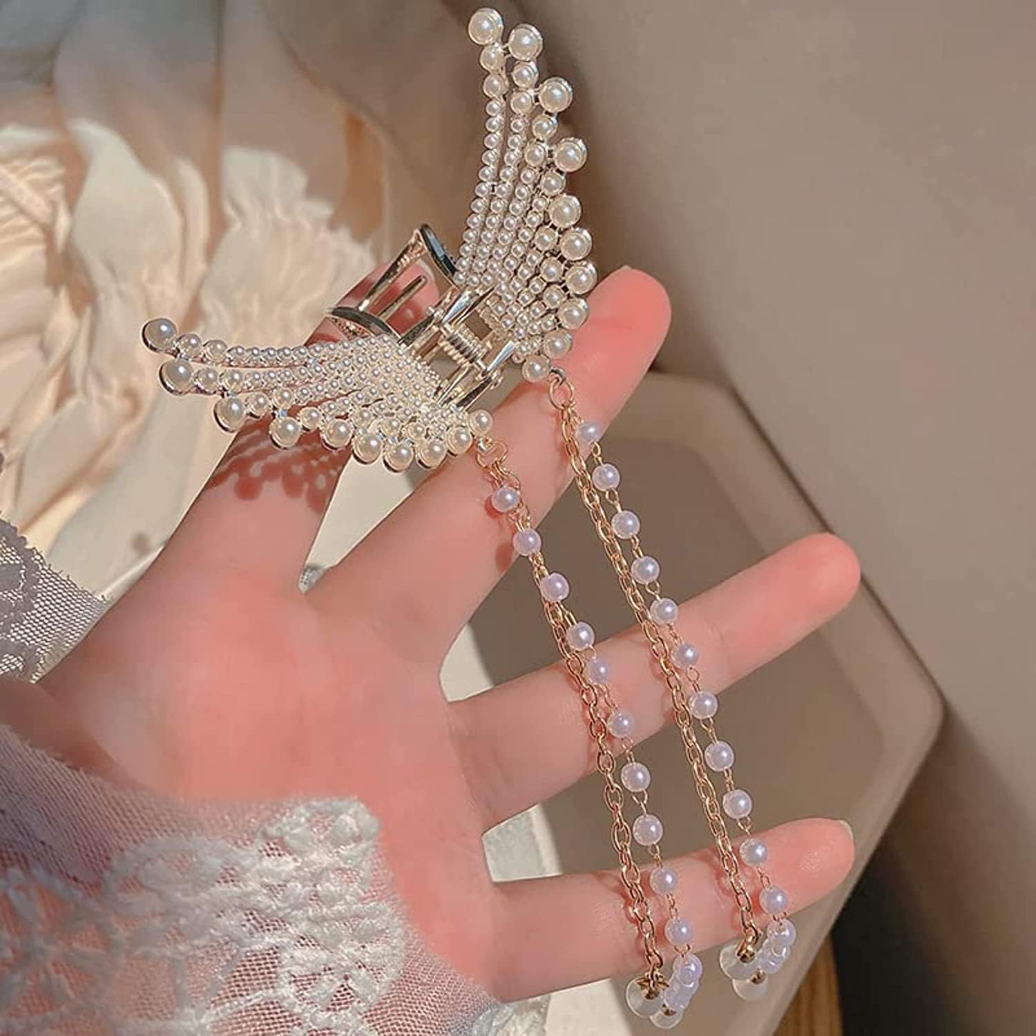PACKAGE INCLUDES: You will get 1 Pc Pearl butterfly tassel hair clip for women.